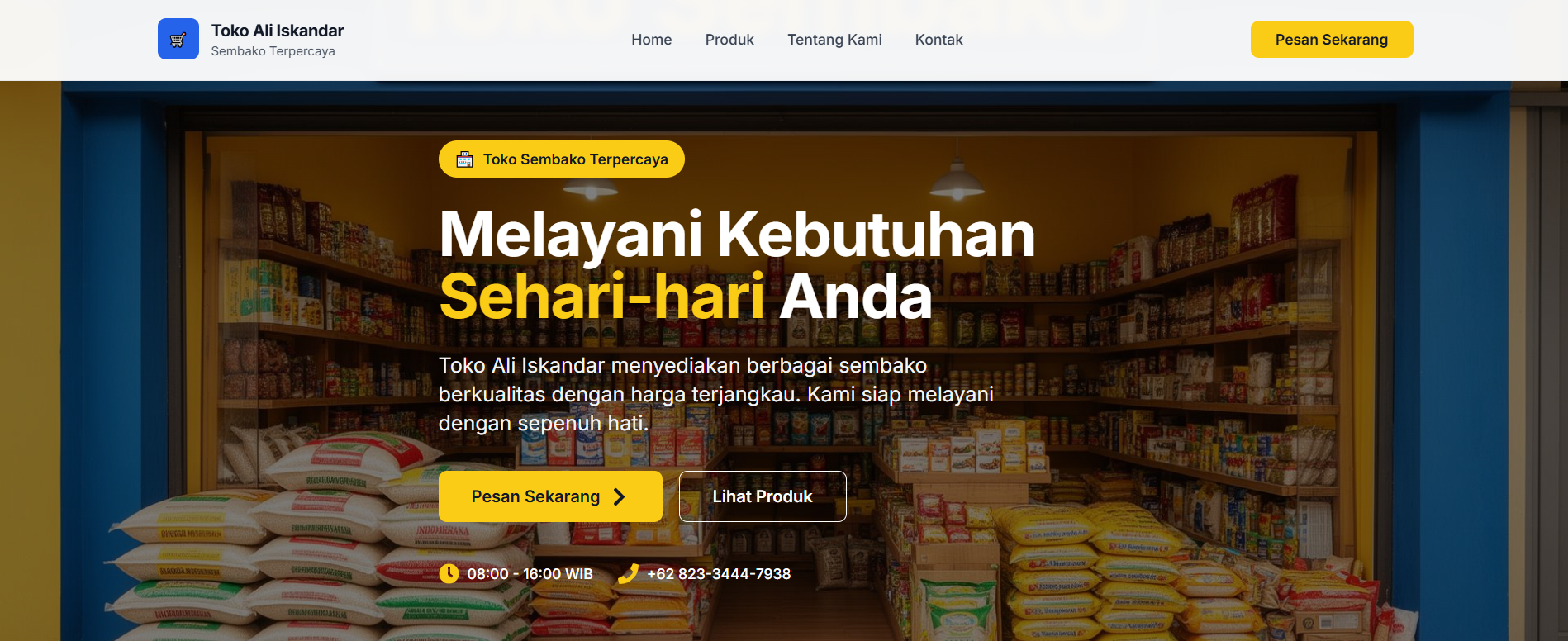 Platform toko sembako online untuk memudahkan pembeli melihat harga produk dan melakukan pemesanan via Whatsapp.